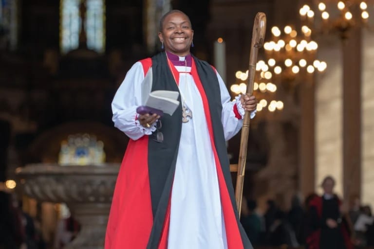 The symbolic elements also include Archbishop Sarah’s arrival at the West Door of the Cathedral, where she will bang three times seeking permission to enter.